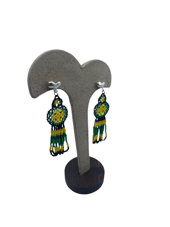Arte Huichol.- Aretes de chaquira realizados por los huicholes de Nayarit. La joyería hecha con cuentas de chaquira es un elemento importante en la indumentaria de los huicholes, es un excelente accesorio para combinar.
