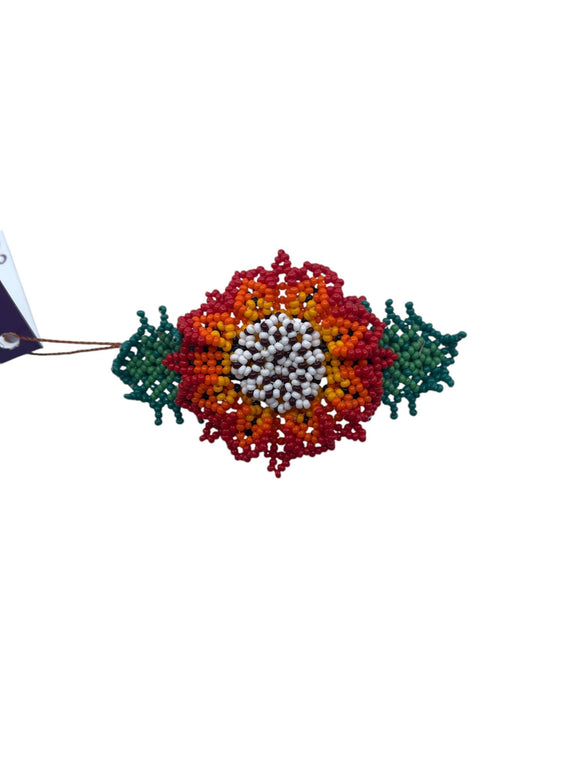 Arte Huichol.- Broche de chaquira realizado por los huicholes de Nayarit. La joyería hecha con cuentas de chaquira es un elemento importante en la indumentaria de los huicholes, es un excelente accesorio para combinar.