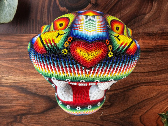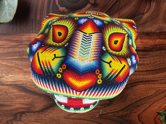 Arte Huichol.- Figura realizada por los huicholes y forrada con diminutas cuentas de chaquira.