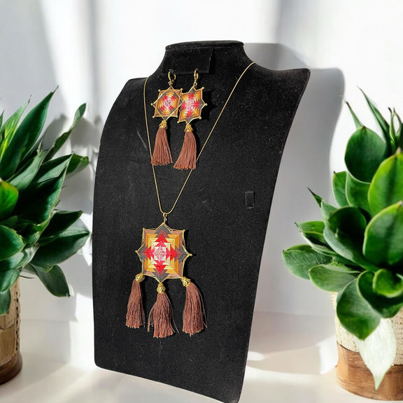Arte Huichol.- Collar y aretes de chaquira realizados por los huicholes de Nayarit. La joyería hecha con cuentas de chaquira es un elemento importante en la indumentaria de los huicholes, es un excelente accesorio para combinar.