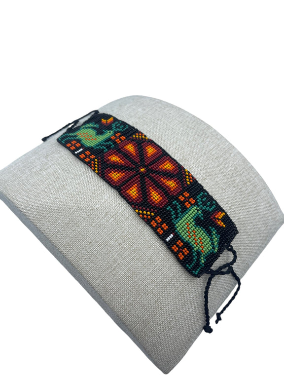 Arte Huichol.- Pulsera de chaquira realizada por los huicholes de Nayarit. La joyería hecha con cuentas de chaquira es un elemento importante en la indumentaria de los huicholes y es un excelente accesorio para combinar.